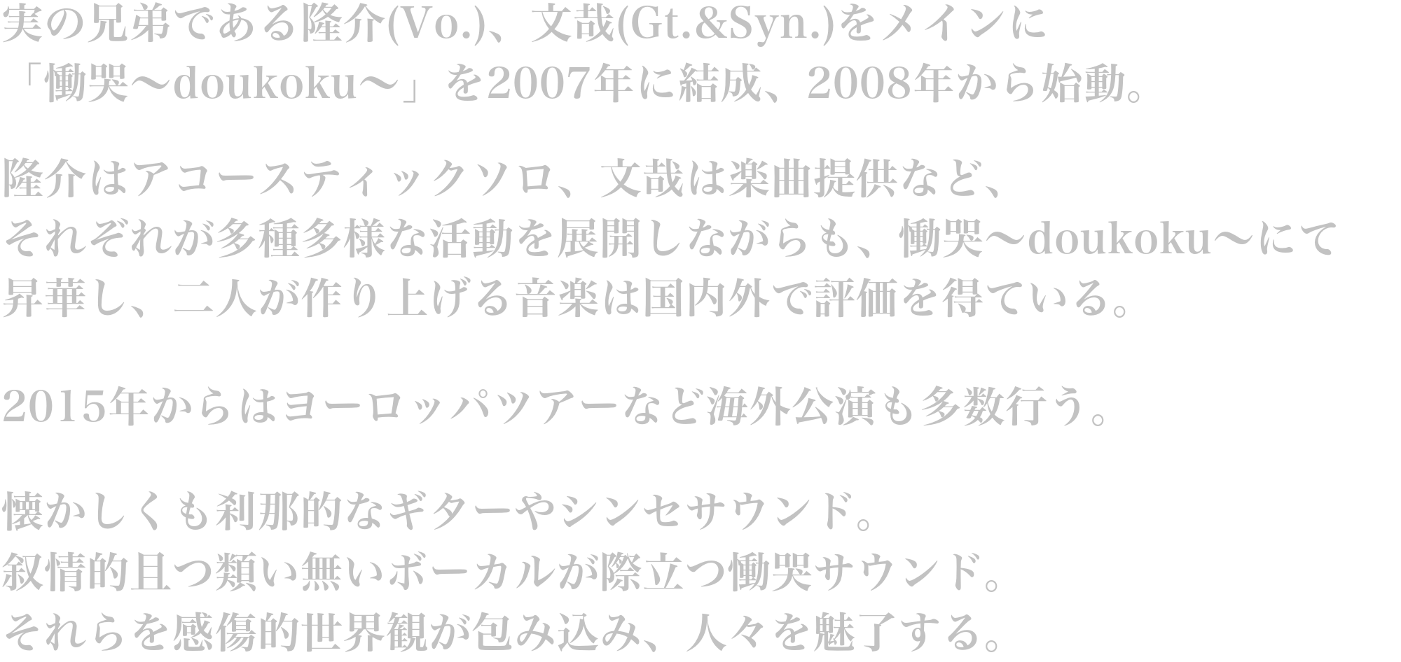 - ヨーロピアンマガジン「Akataiyou no Nihon」に慟哭~doukoku~のインタビューが掲載される。